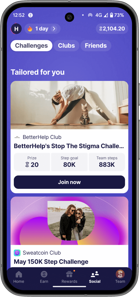 Fitness and mental health are deeply connected, which makes collaborating with Sweatcoin such a strong match. Their Challenge and Marketplace campaigns not only resonate with our mission but also deliver strong engagement and business results, making this collaboration a true win-win.