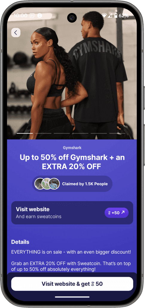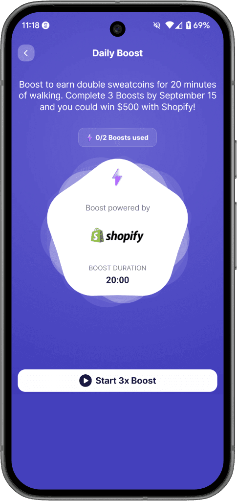 Own a daily moment in Sweatcoin for 14 or 30 days and integrate your brand into our community. Appear across key touchpoints (home, push, email, Marketplace) to move users from awareness to purchase, with tracked results and CRM-ready email opt-ins. Limited slots, tell us your dates and regions to reserve